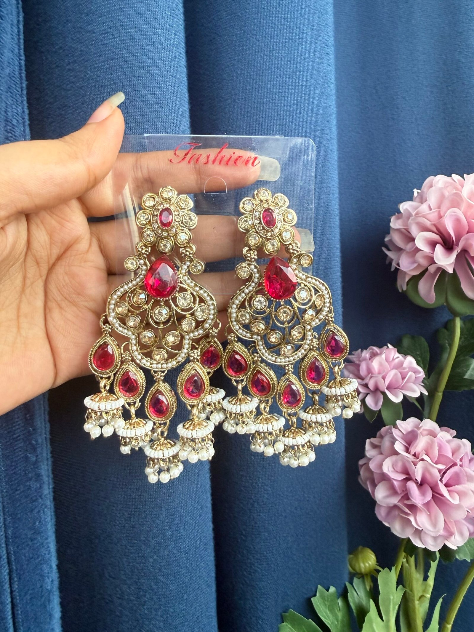 Be the first to review “Ashifa Premium Kundan Earrings – Dark Pink” Cancel reply