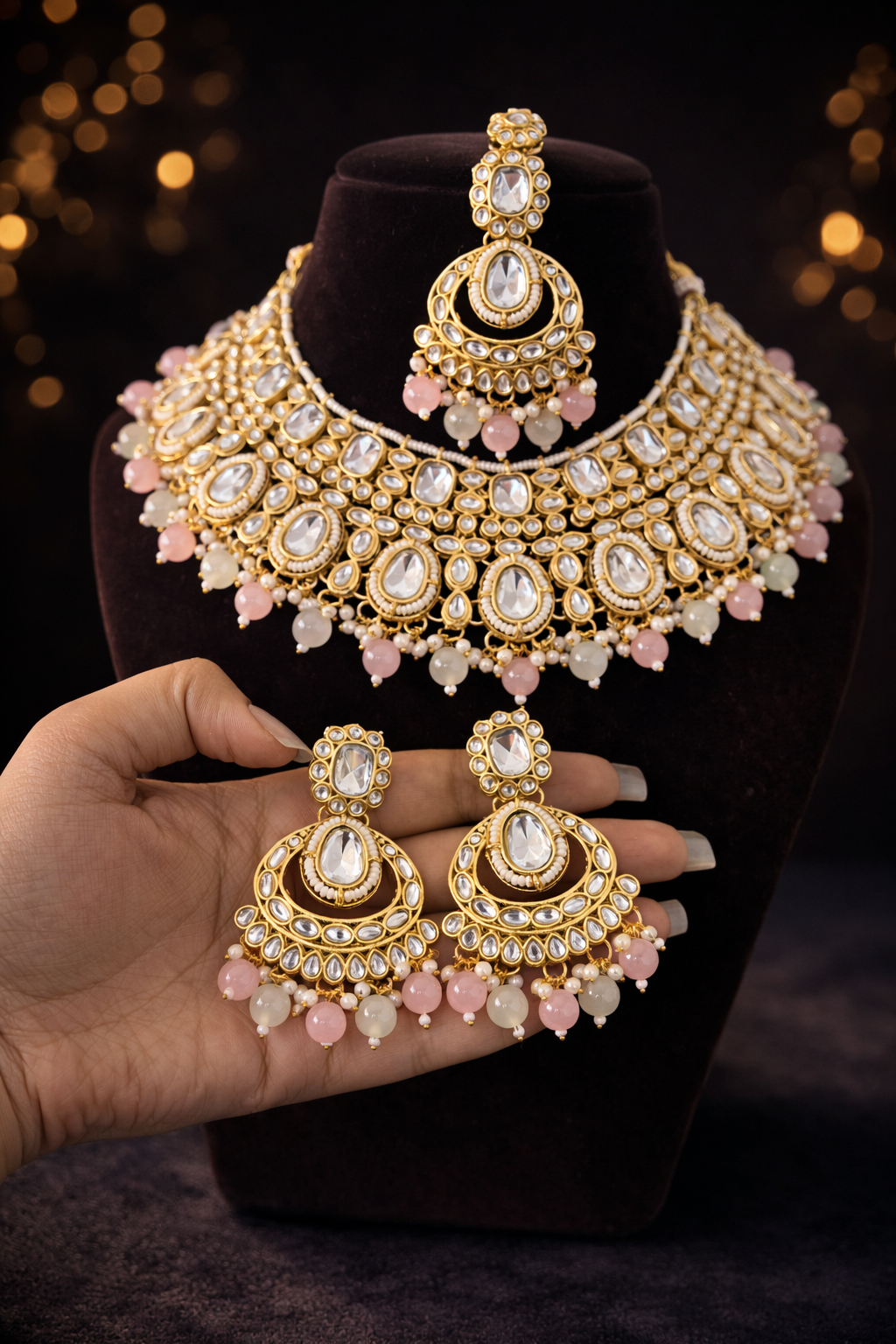 Be the first to review “Asmeena Kundan Jewellery Set – Mint Pink” Cancel reply