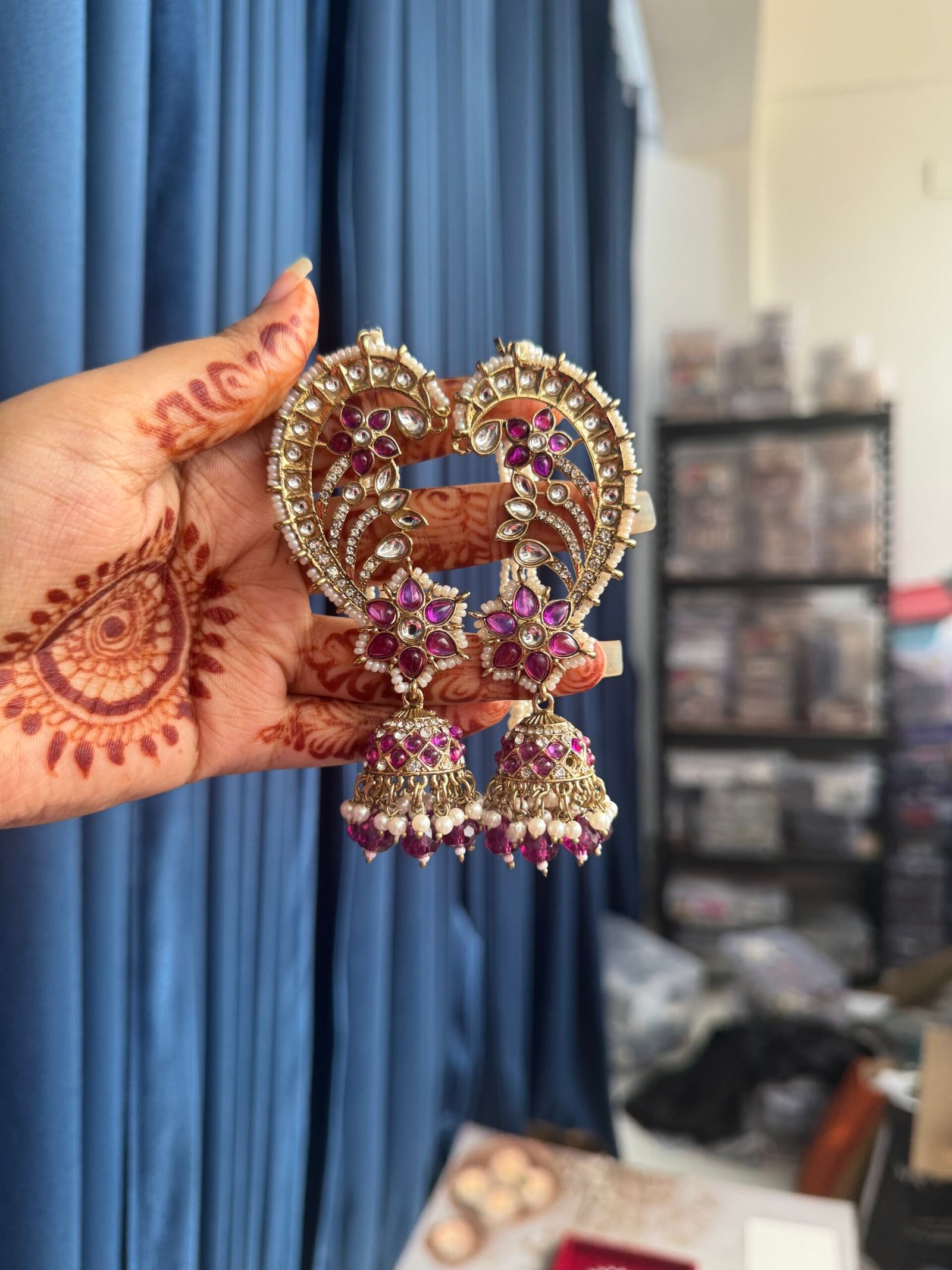 Length of Jhumka – 5 cms Total length with Earcuffs – 10 cms Weight – 22 grams each