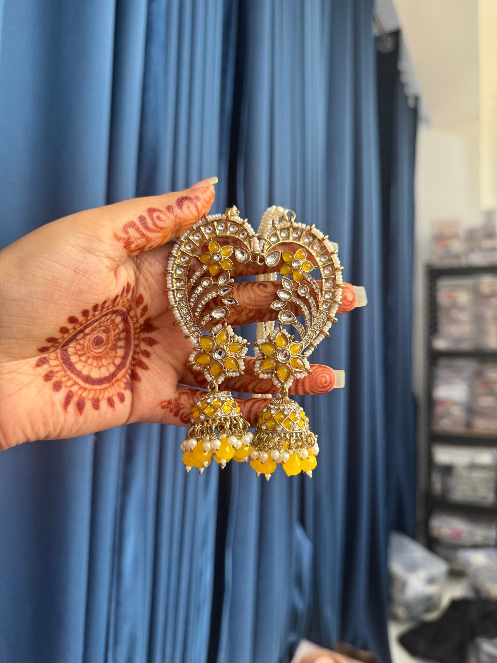 Be the first to review “Earcuff Jhumka With Kaan Chain – Yellow” Cancel reply