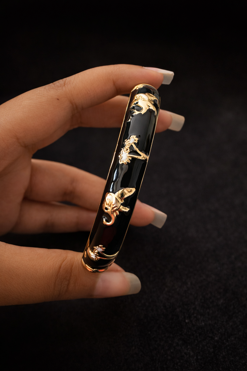 Black bangle, Elephant bangle, openable bracelet