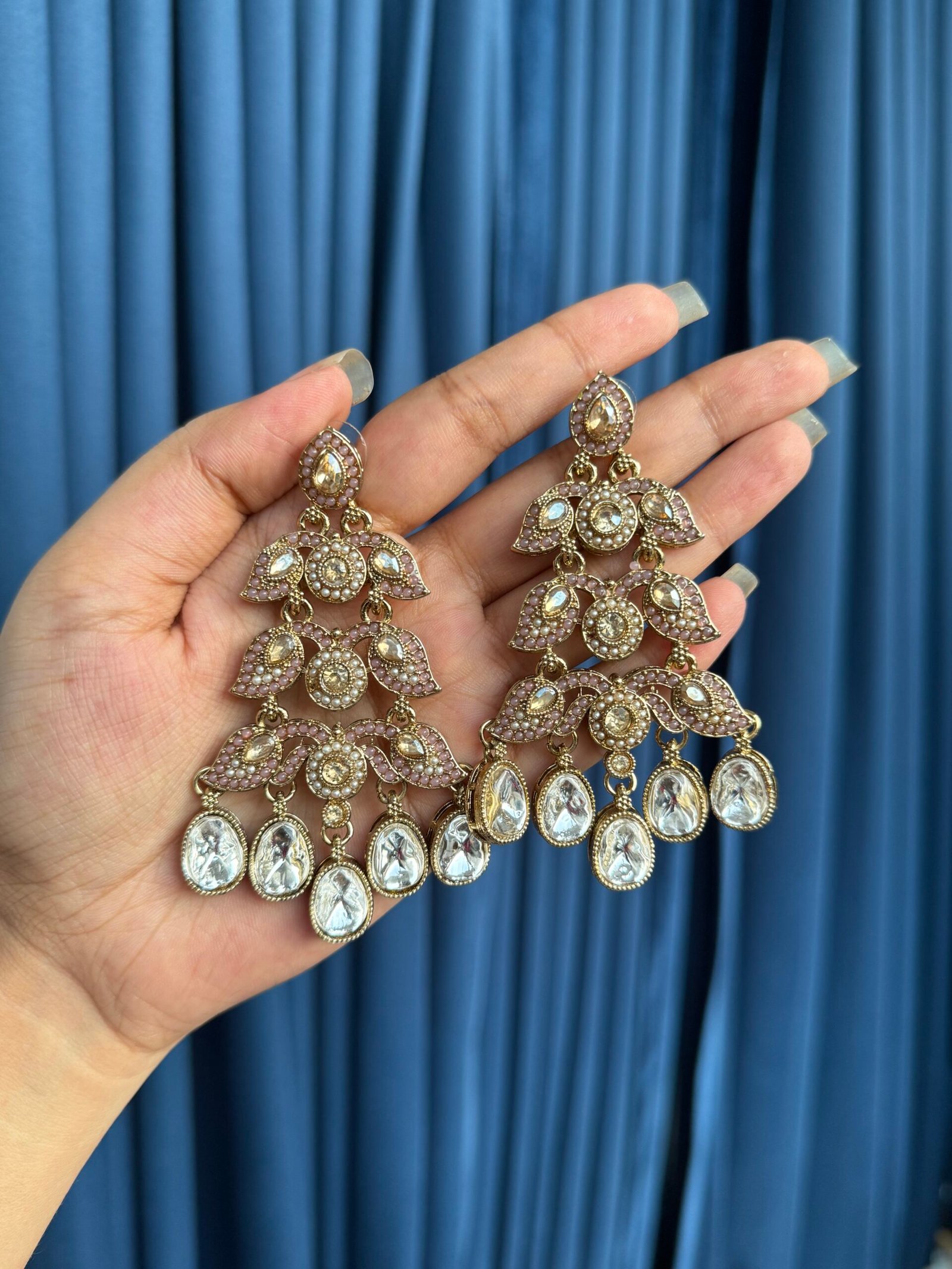 Be the first to review “Gulzar Kundan Drops – Light Pink” Cancel reply