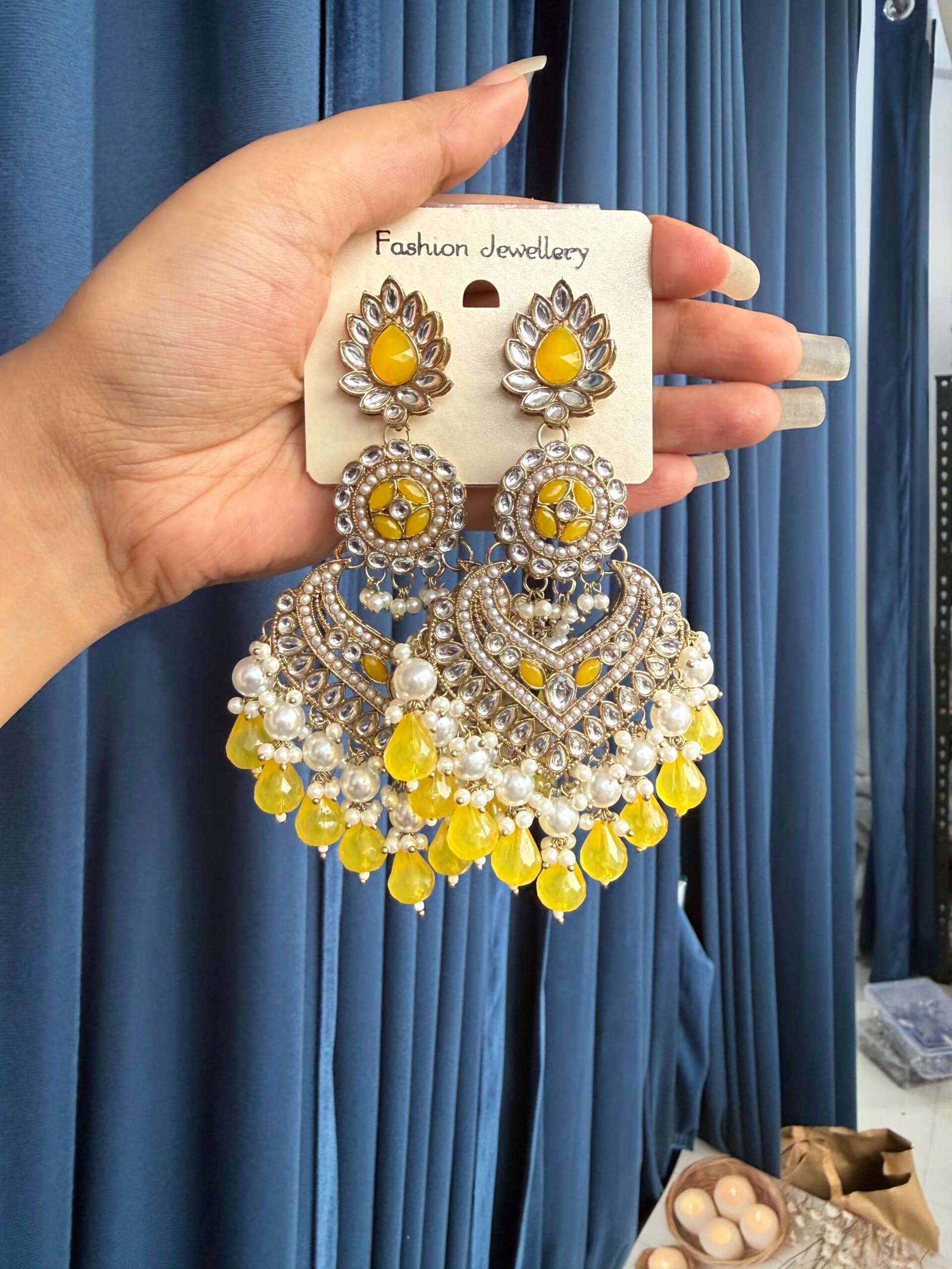 Be the first to review “Hansika Kundan Earrings – Yellow” Cancel reply