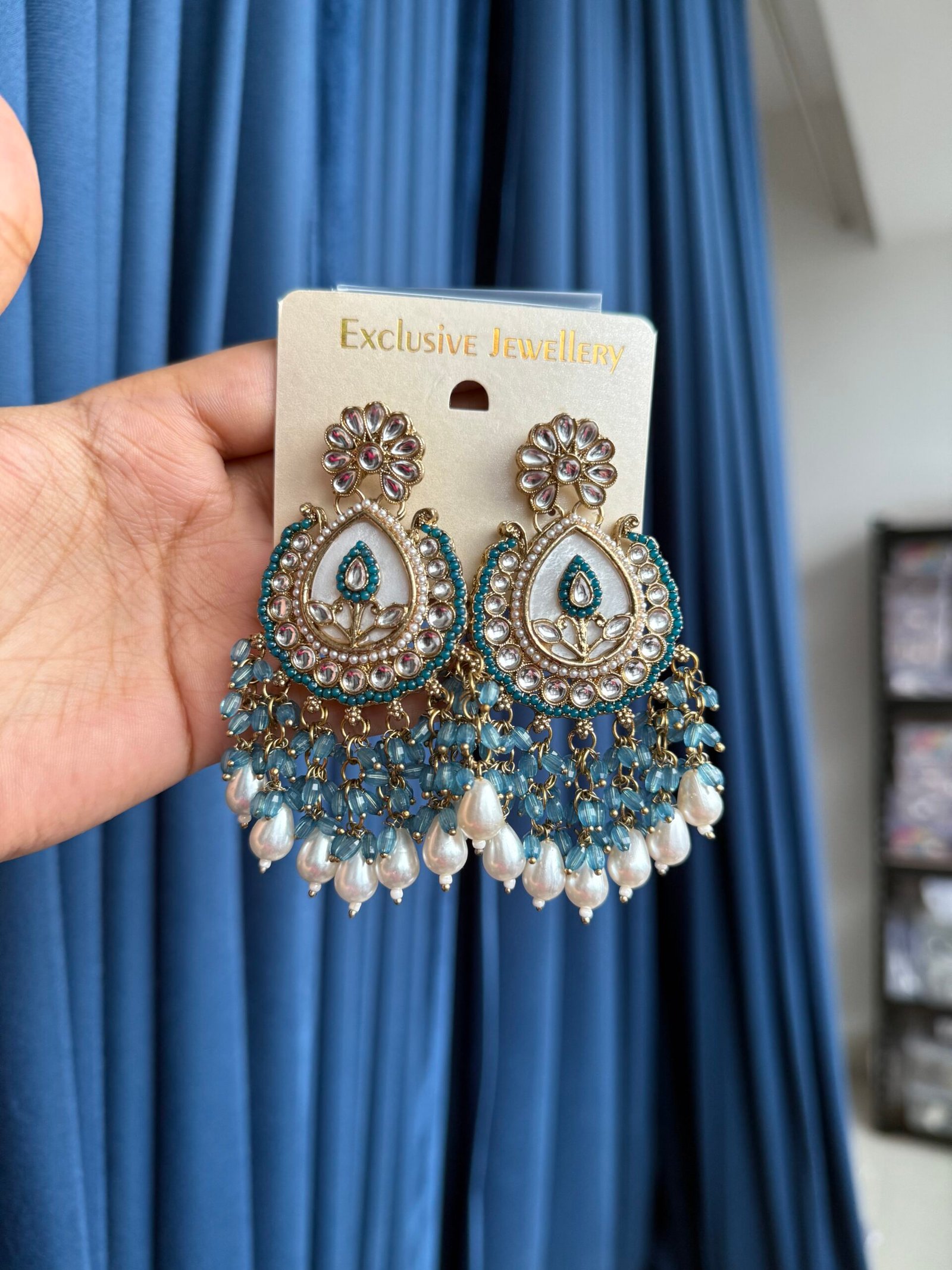 Be the first to review “Jyoti Kundan Chandbali – Teal Blue” Cancel reply