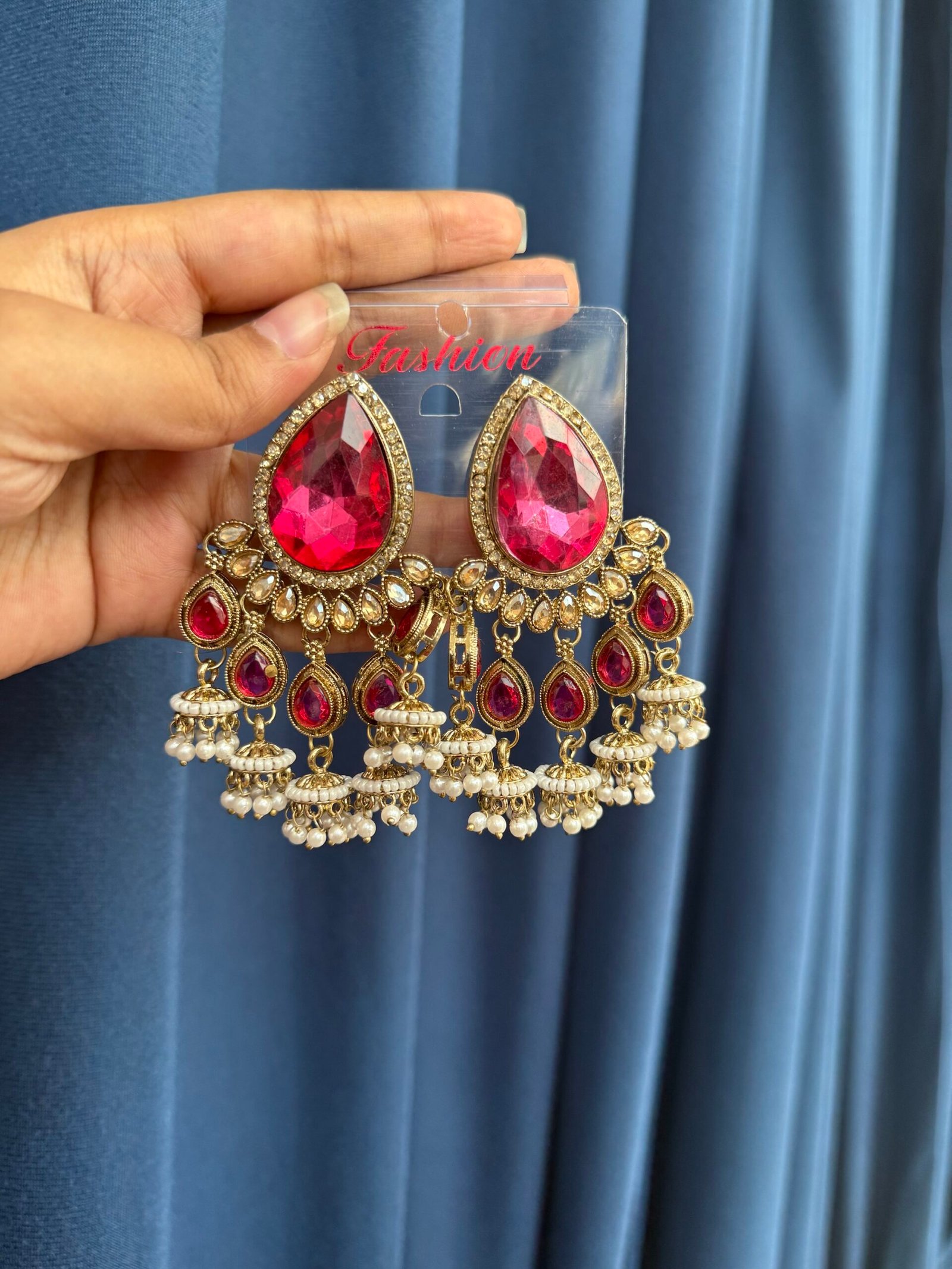 Be the first to review “Kamya Stone Earrings – Dark Pink”