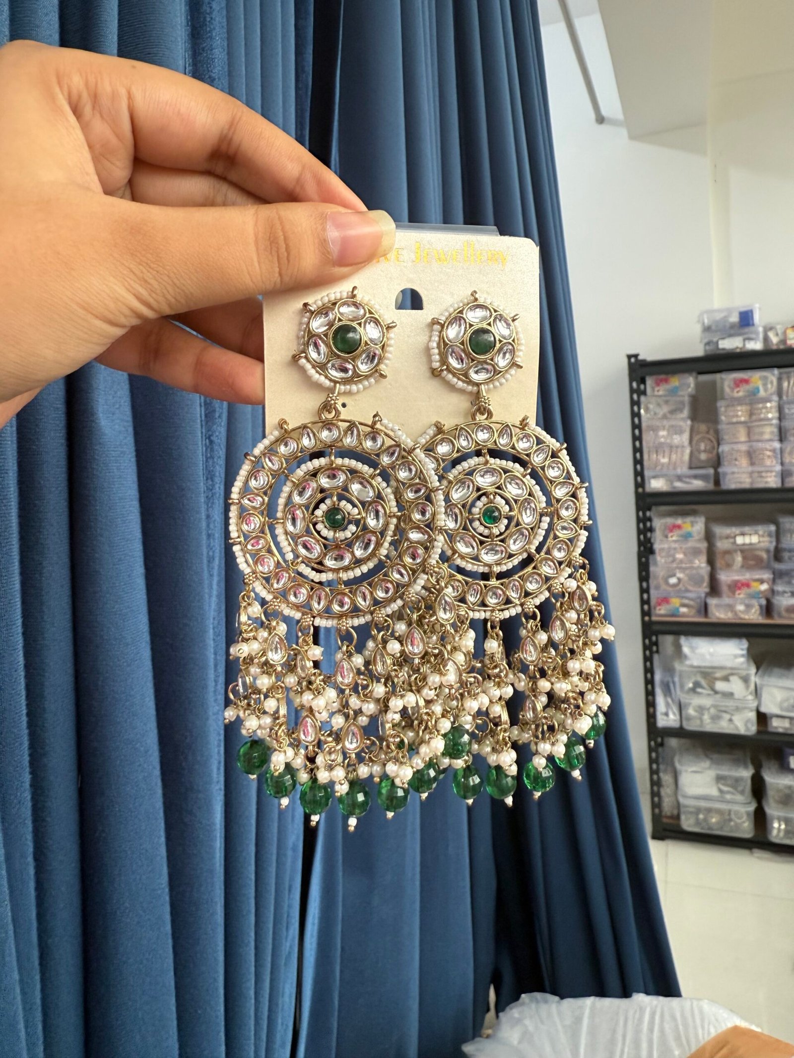 Be the first to review “Kanika Premium Chandbali Earrings – Dark Green” Cancel reply