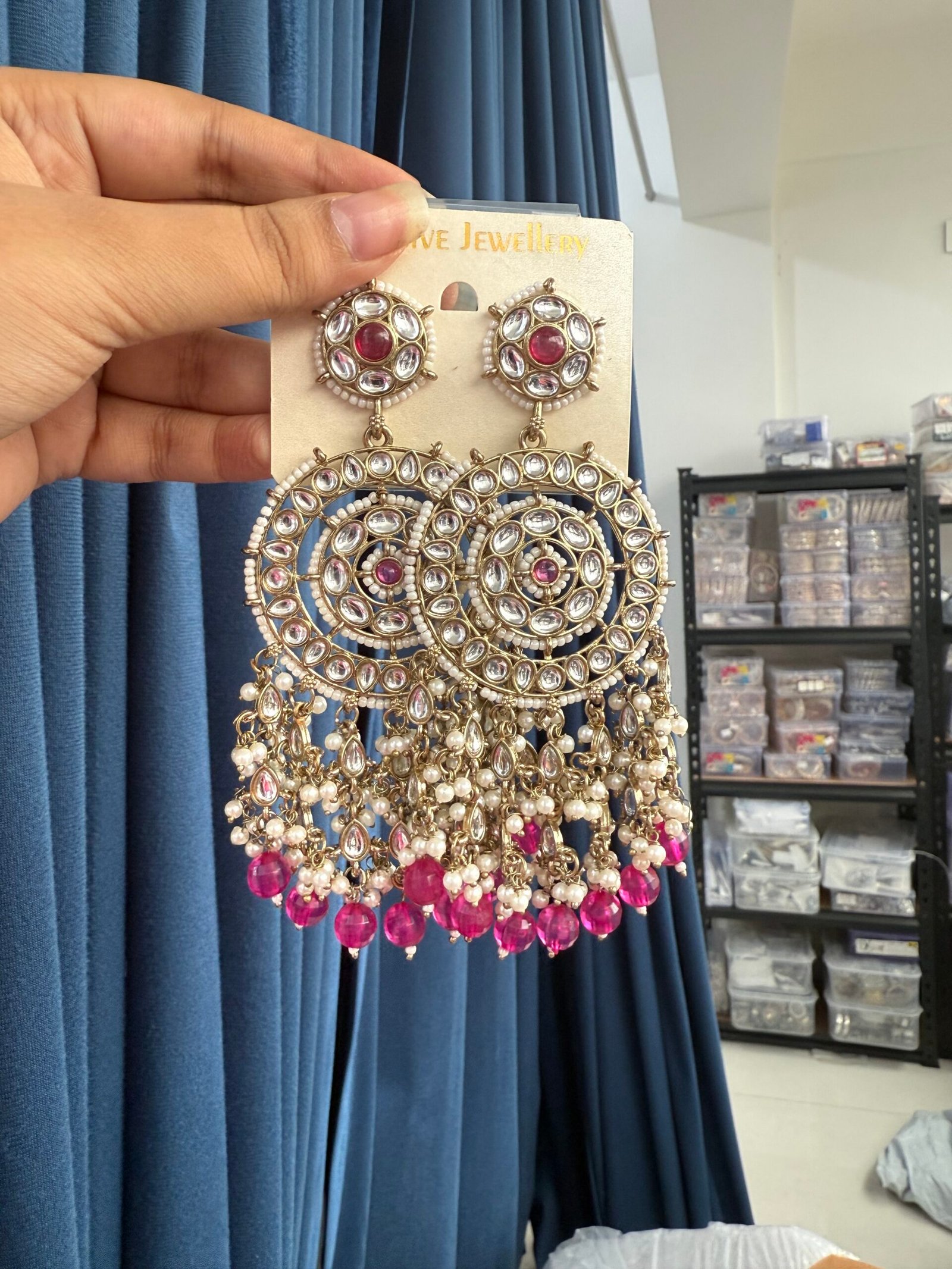 Be the first to review “Kanika Premium Chandbali Earrings – Dark Pink”
