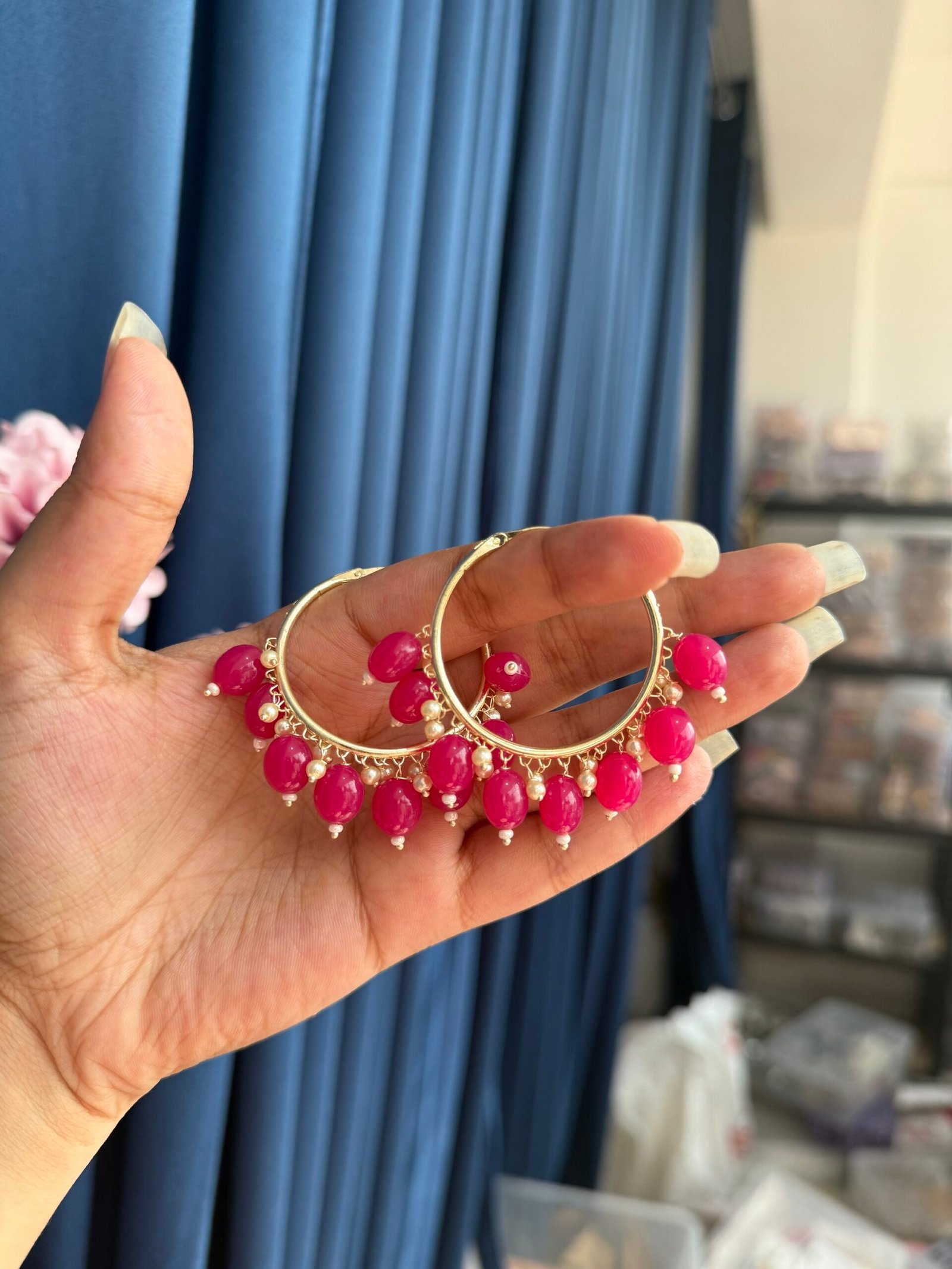 Be the first to review “Kundan Hoops – Dark Pink” Cancel reply