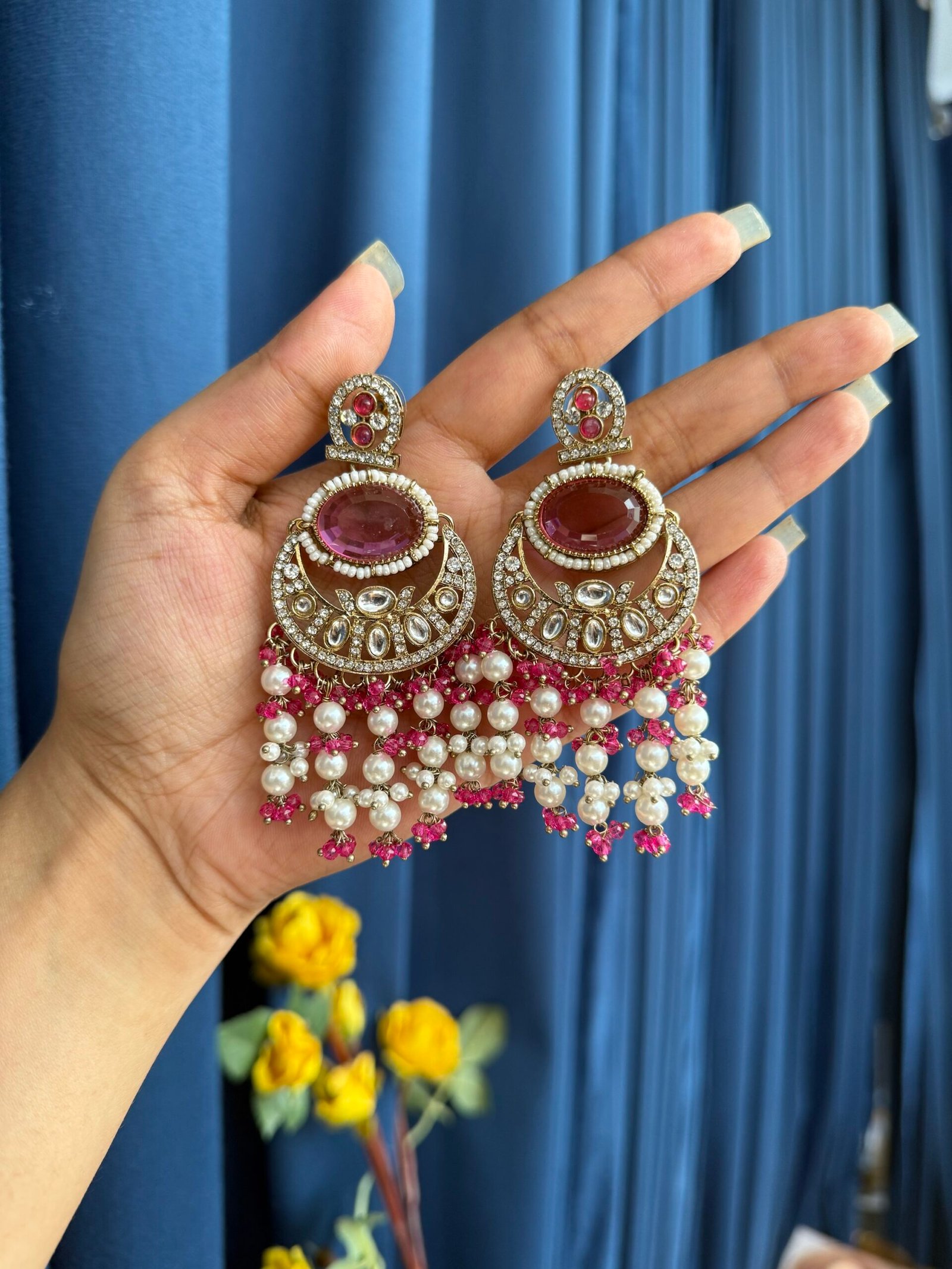 Be the first to review “Kusha Chandbali Earrings – Dark Pink” Cancel reply