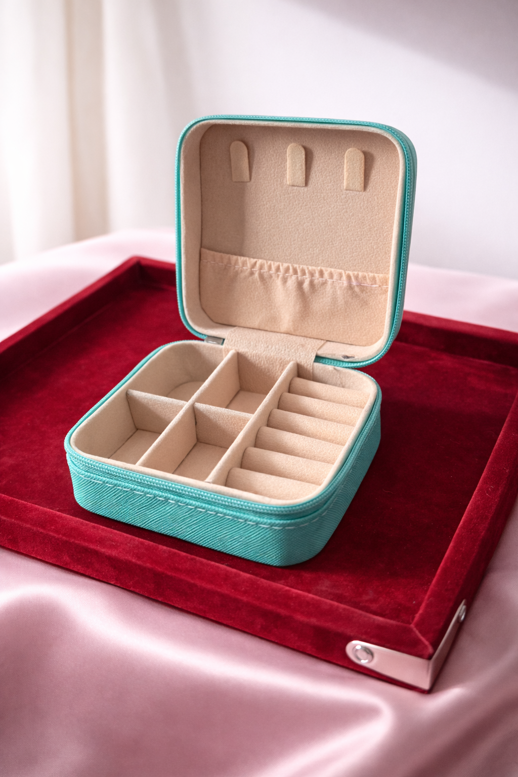 This Stylish jewellery organiser is a compact, portable and stylish storage box made of PU Leather with removable compartments.