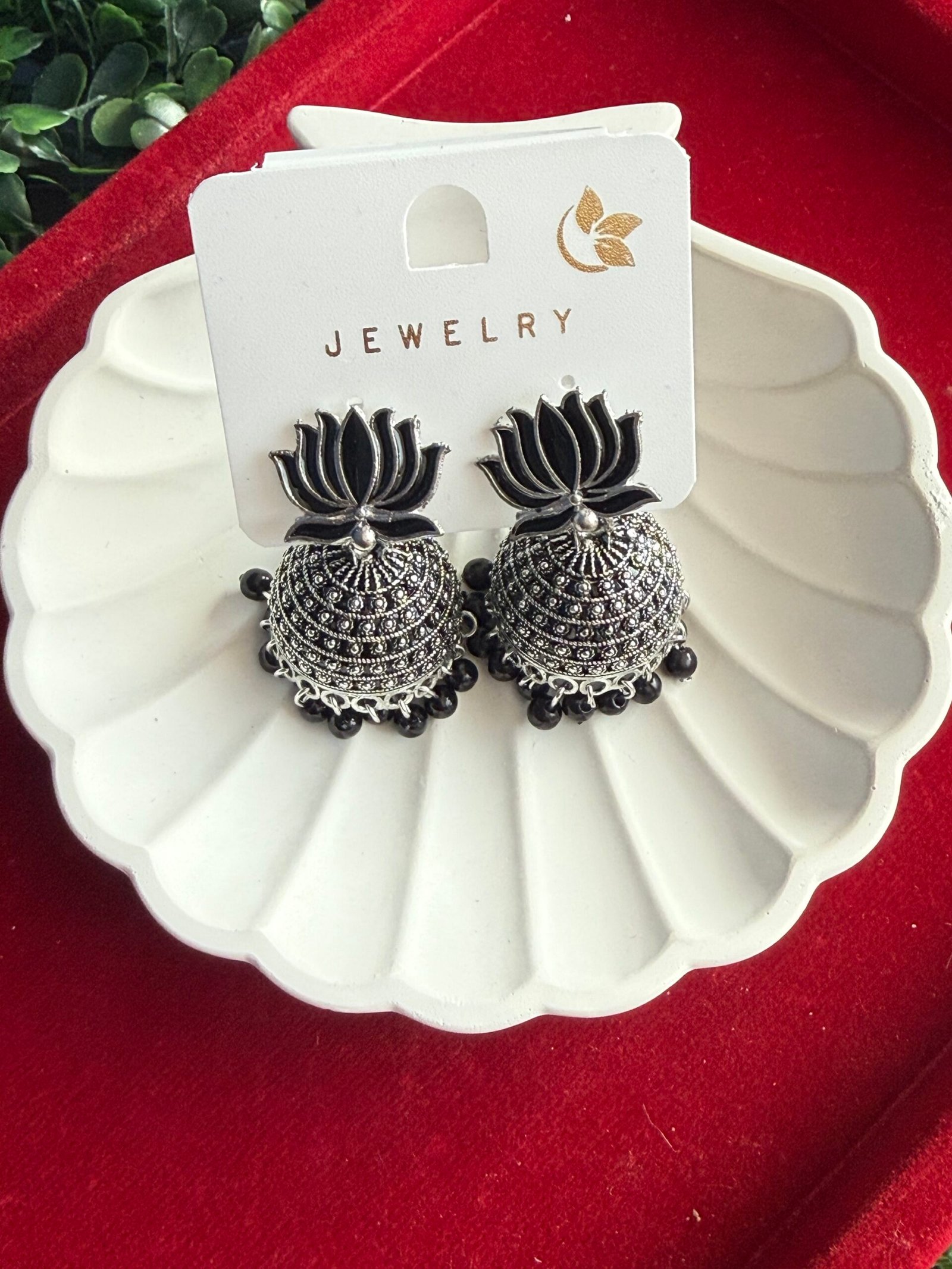 Be the first to review “Lotus Oxidised Jhumka – Black” Cancel reply