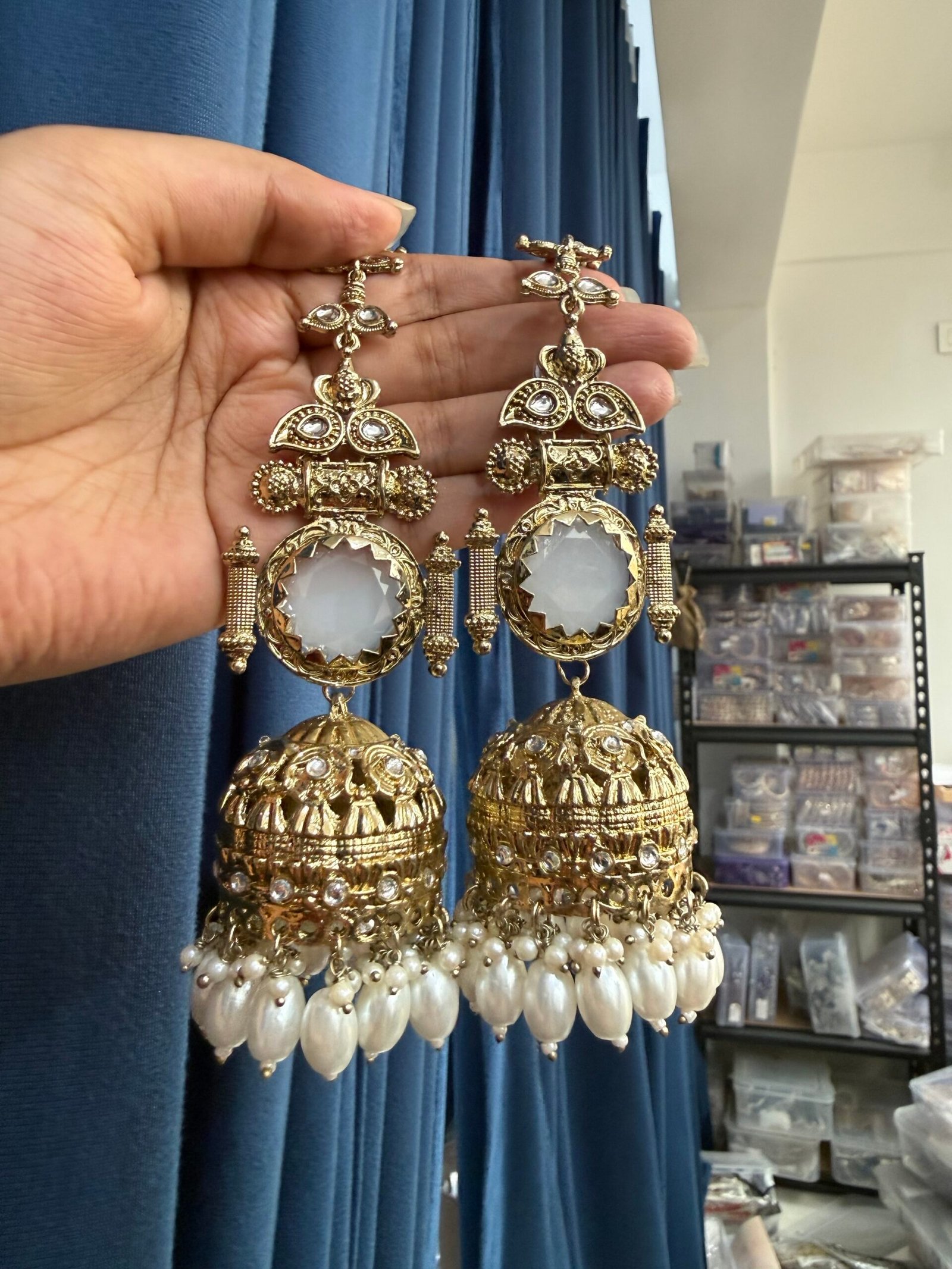 Maheen Premium Jhumka with Kaan Chain – White