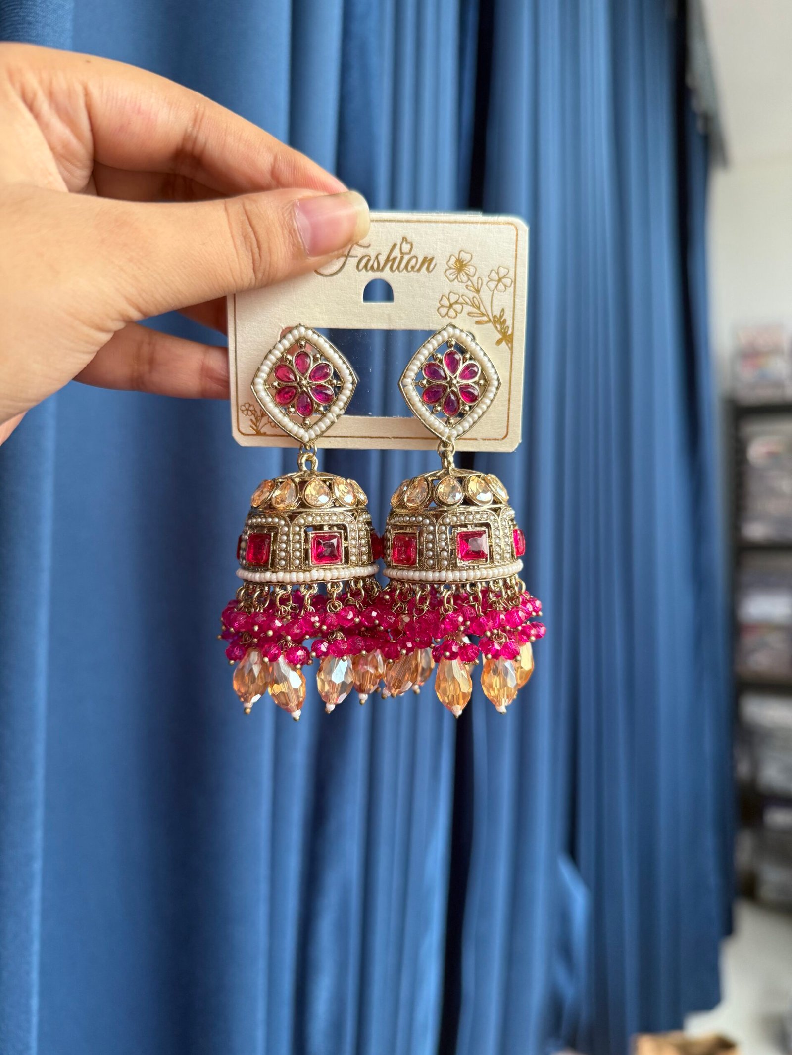 Be the first to review “Maheera Premium Kundan Jhumka – Dark Pink” Cancel reply