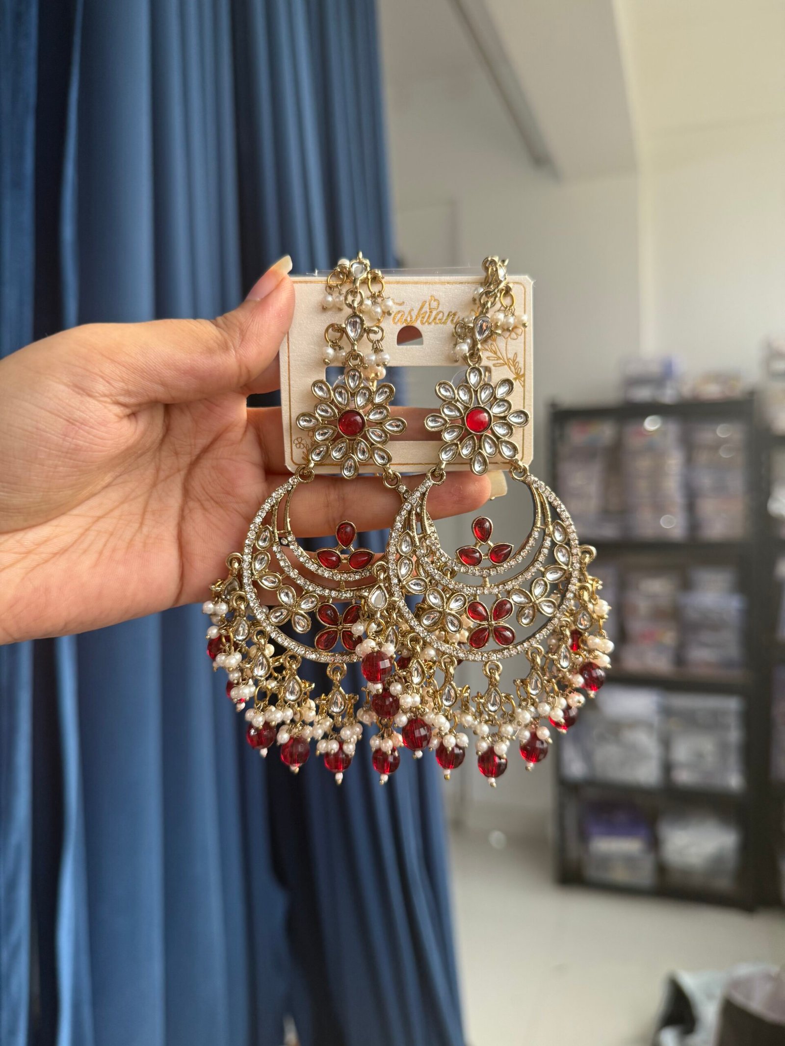 Be the first to review “Meher Kundan Earrings With Kaan Chain – Red” Cancel reply