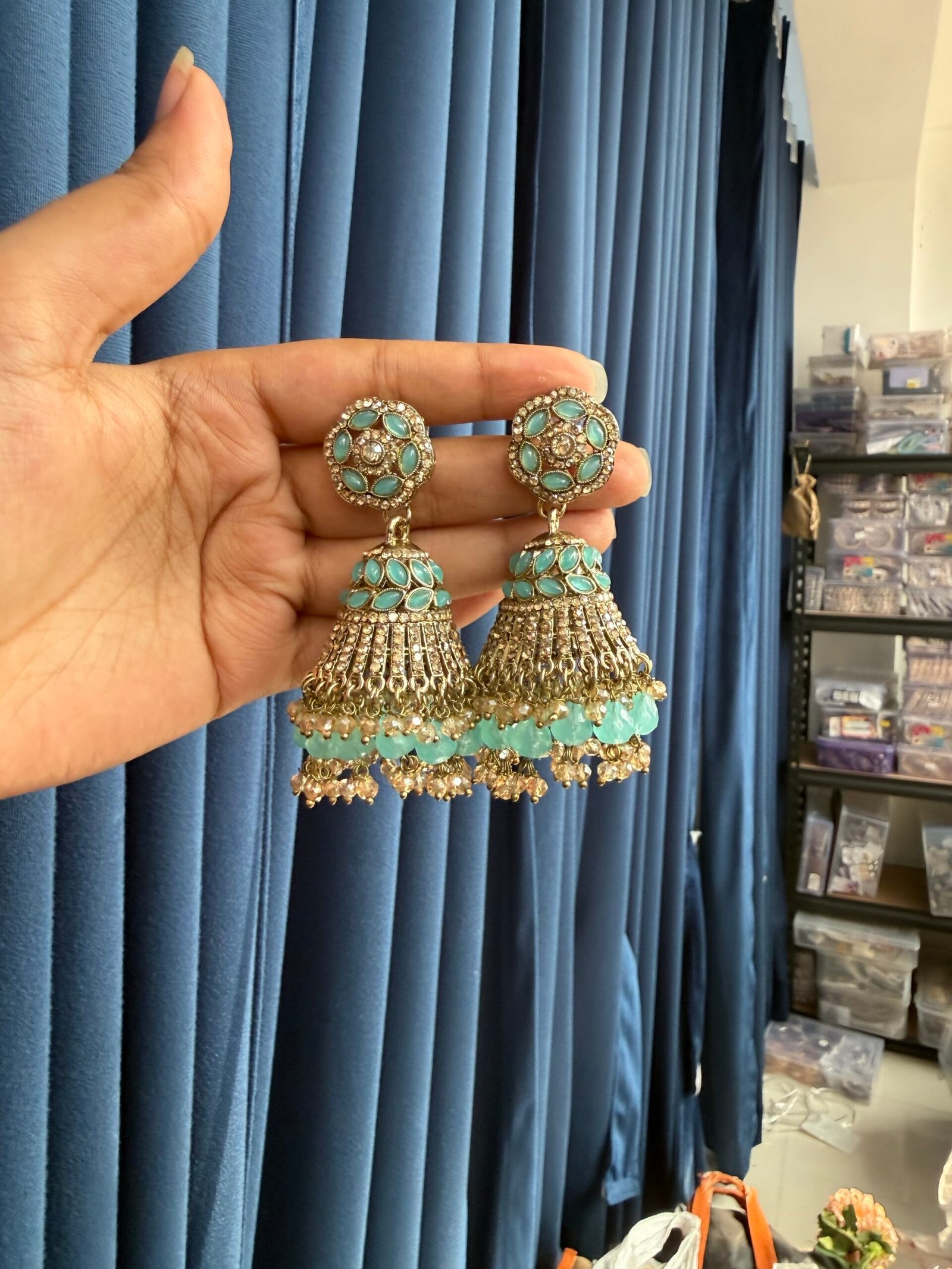 Be the first to review “Mukti Premium Kundan Jhumka – Light Blue” Cancel reply