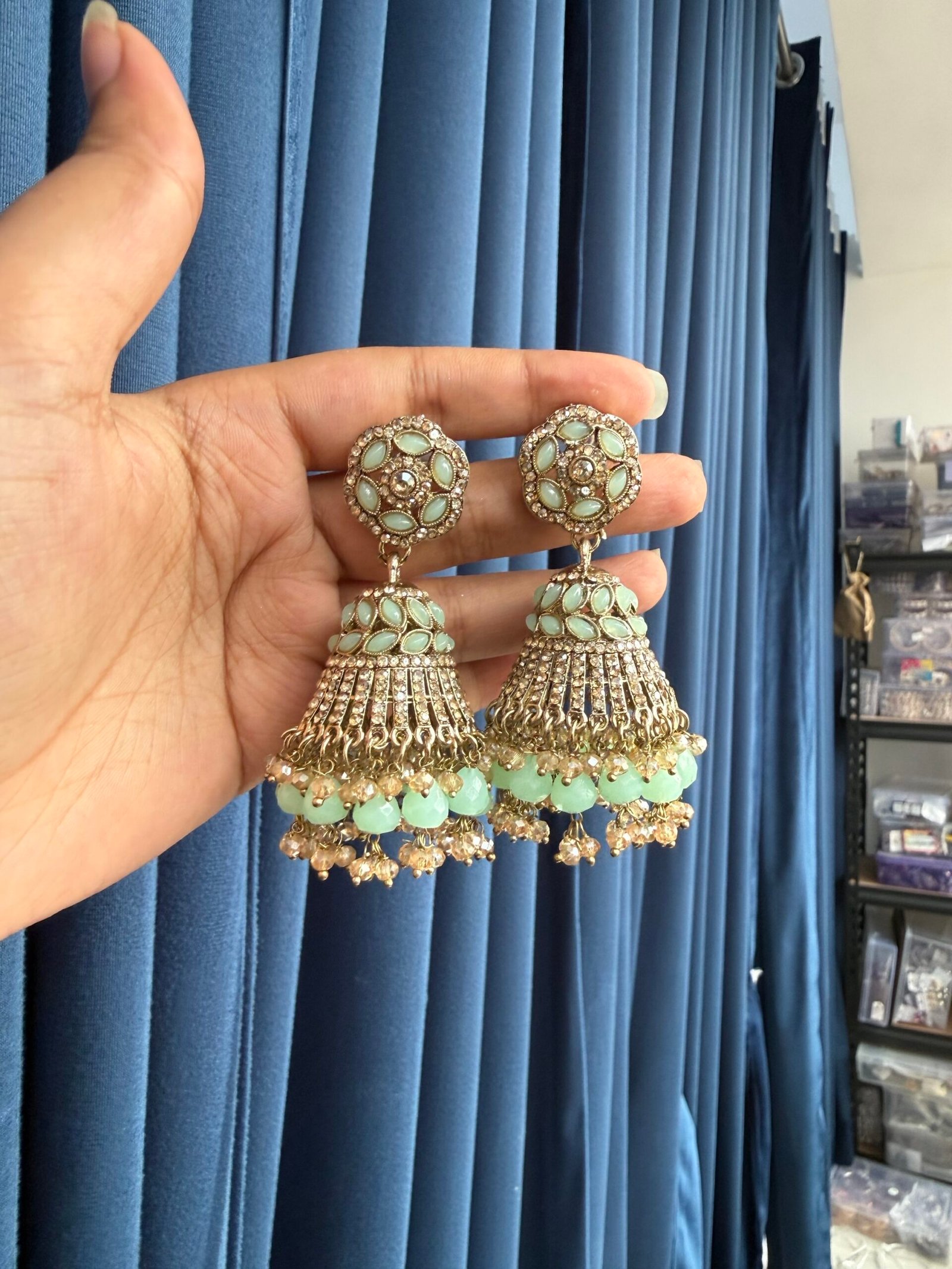 Be the first to review “Mukti Premium Kundan Jhumka – Light Green” Cancel reply