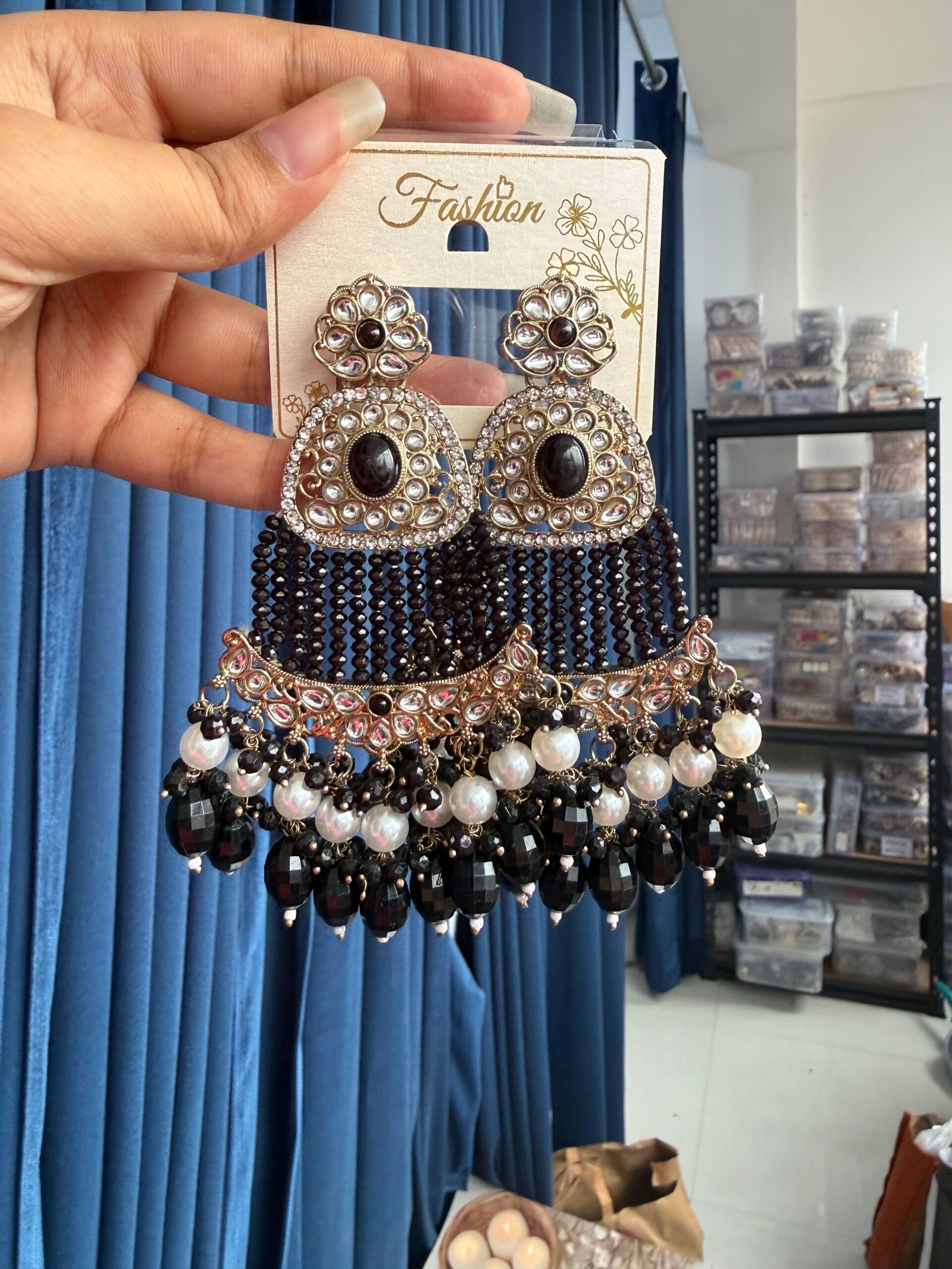 Be the first to review “Natasha Kundan Earrings – Black” Cancel reply