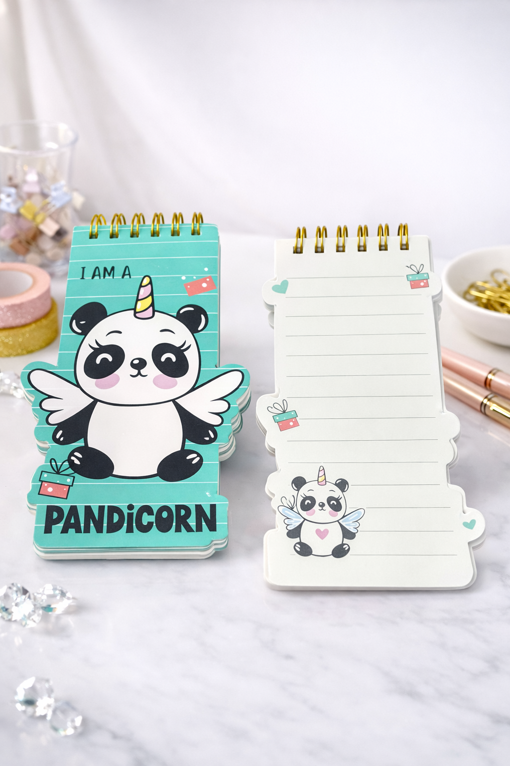 Add a touch of cuteness to your everyday notes with this adorable Pandicorn-themed flip notepad. Featuring a charming panda-unicorn design with soft pastel colors, this compact notepad is perfect for jotting down quick reminders, to-do lists, or creative ideas. The sturdy spiral binding ensures easy page flipping, while the uniquely shaped pages make it stand out on any desk. Lightweight and portable, it’s ideal for school, office, or gifting to stationery lovers who enjoy fun and whimsical designs.