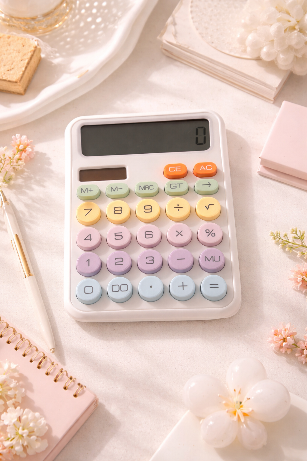 Pastel Solar/Battery Operated Calculator – White