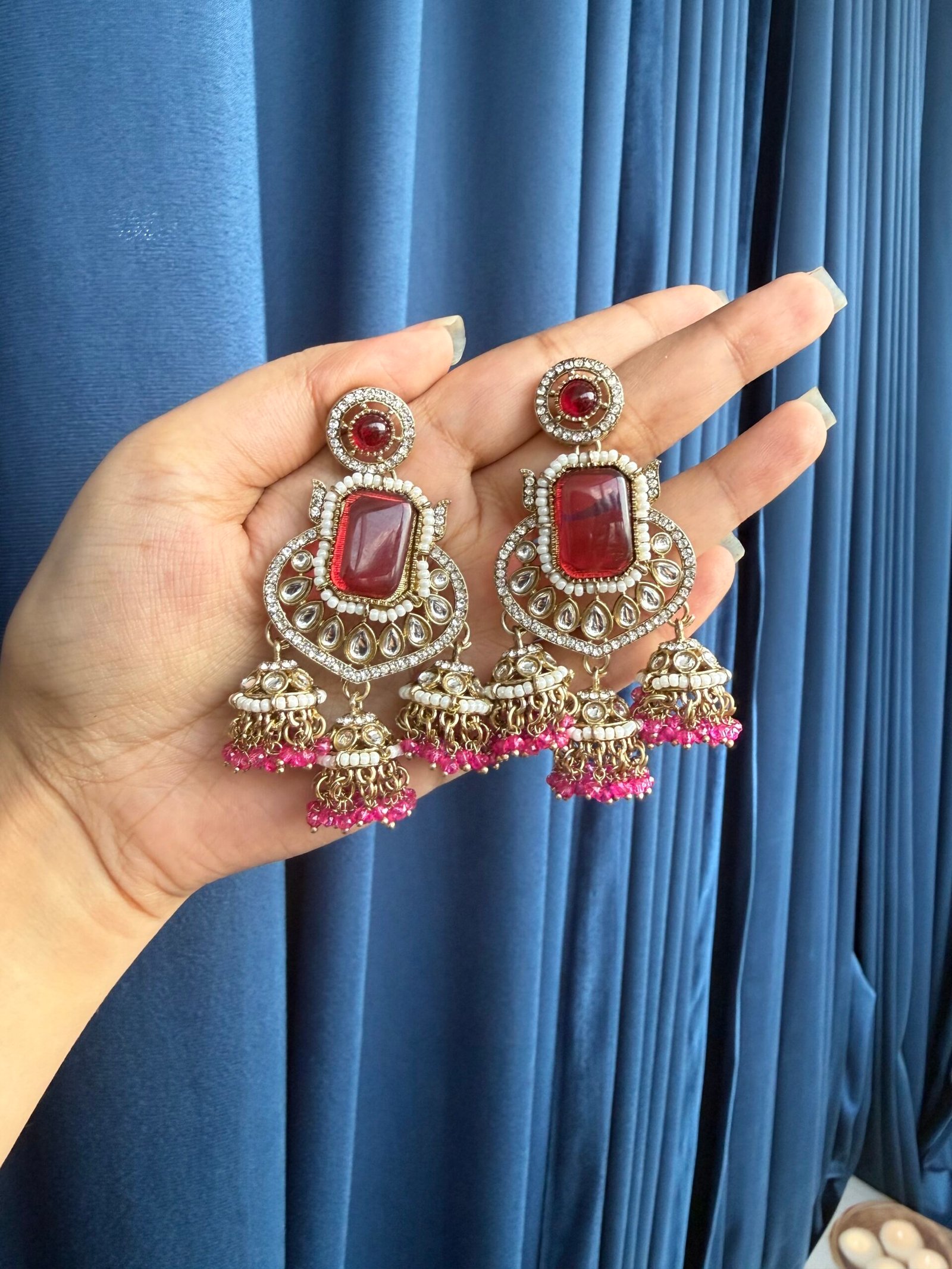 Be the first to review “Reeta Premium Earrings – Dark Pink” Cancel reply