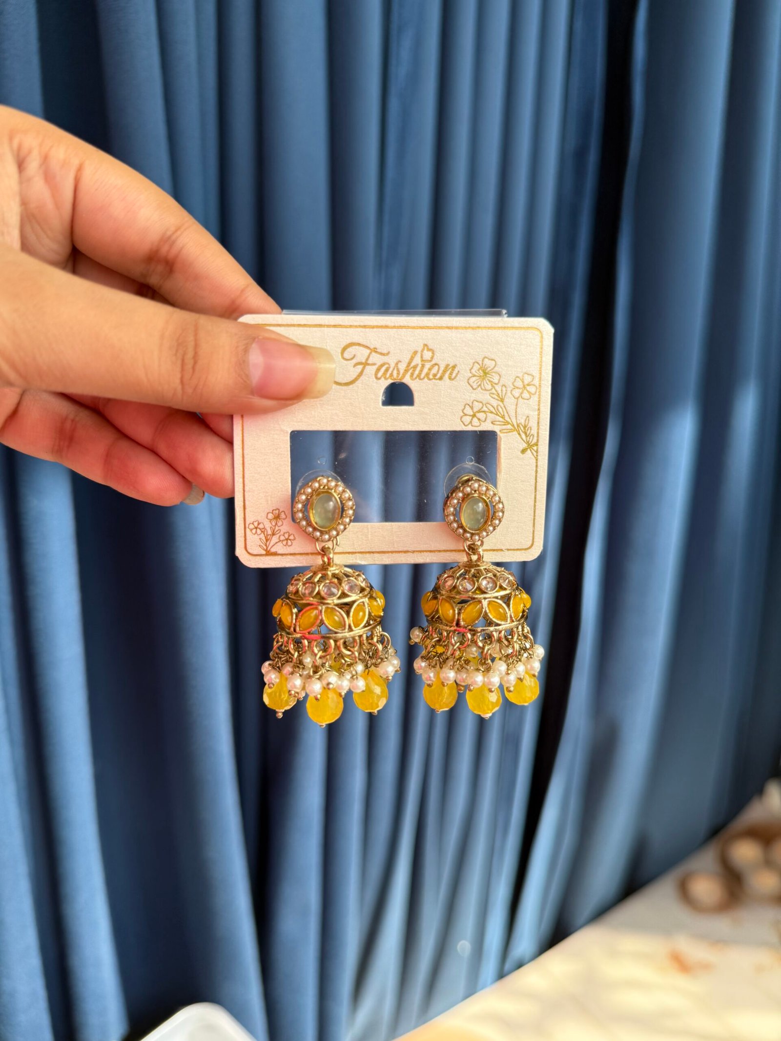 Be the first to review “Ridhi Kundan Jhumka – Yellow” Cancel reply