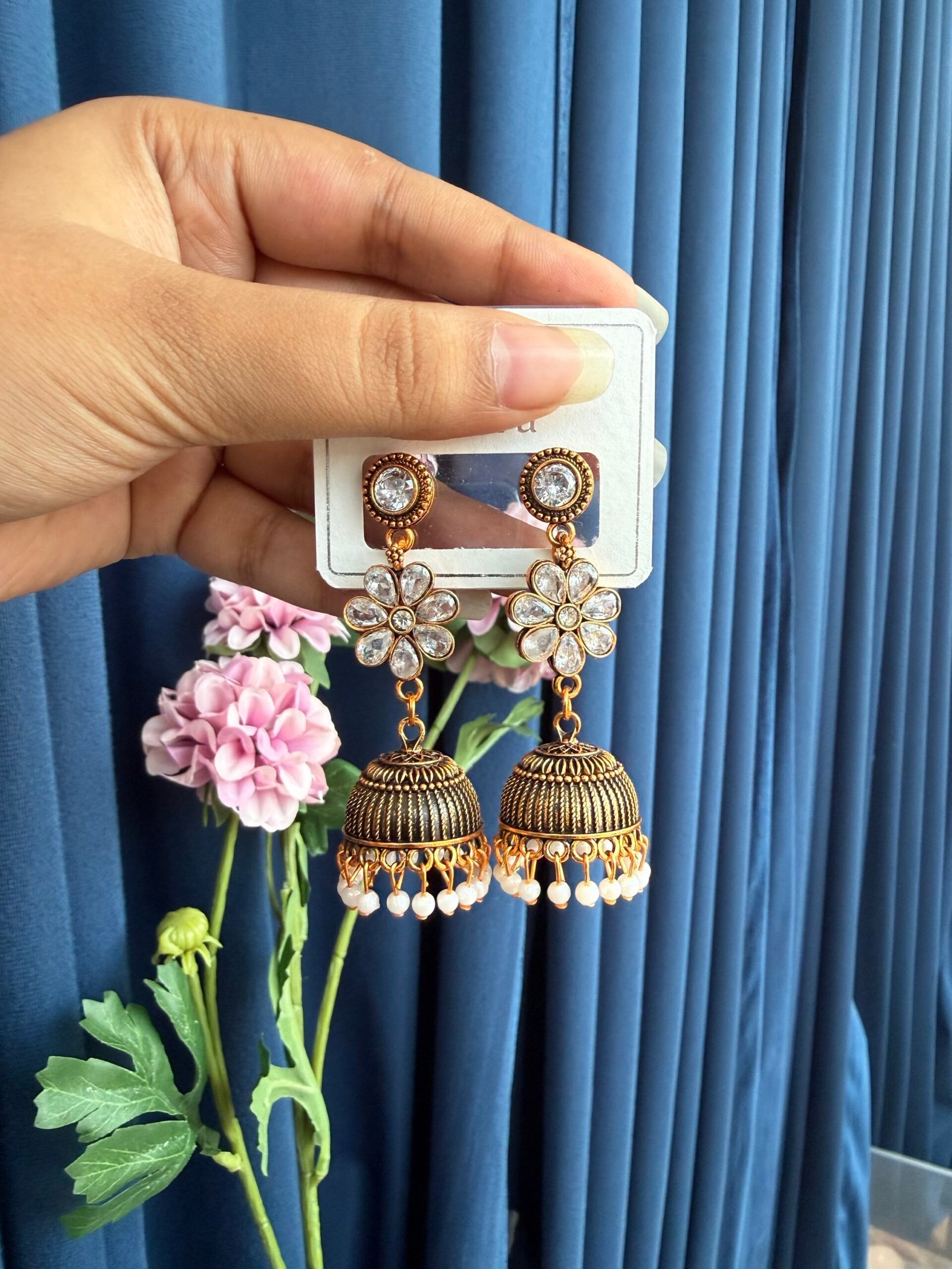 Be the first to review “Rishika Oxidised Golden Jhumka – White” Cancel reply