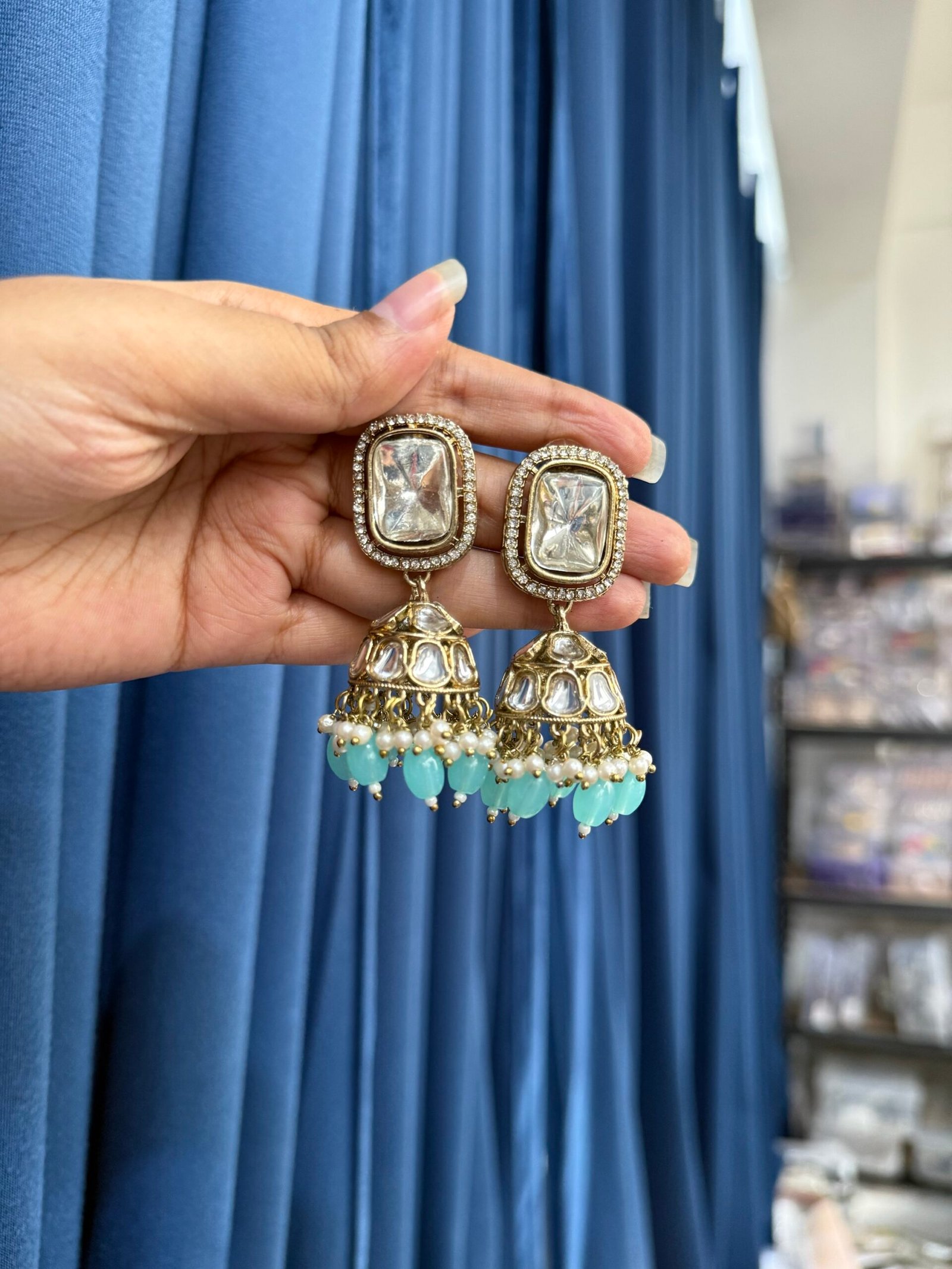 Be the first to review “Seera Kundan Jhumka – Light Blue”