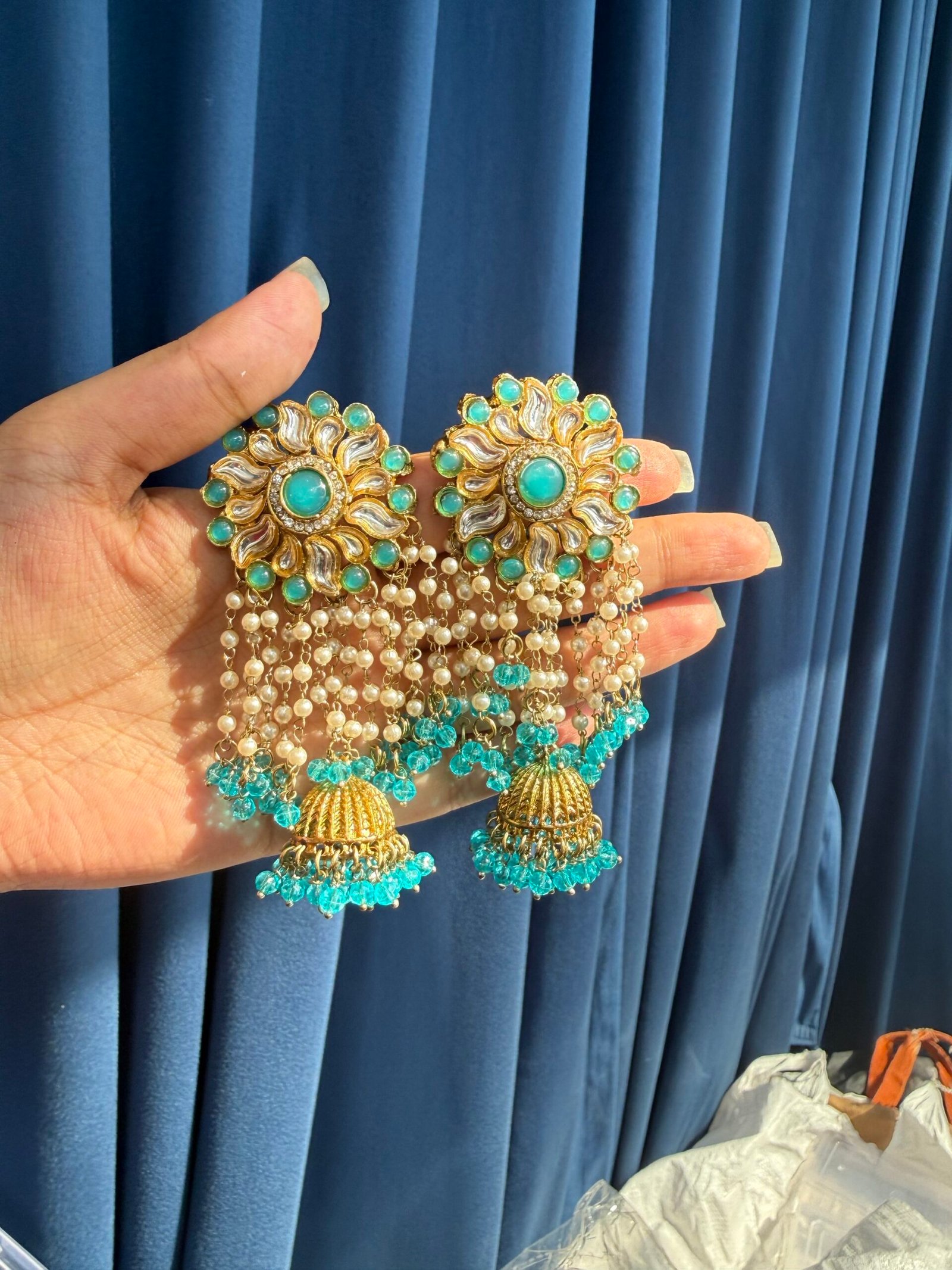 Shivika Kundan Earrings – Light Blue