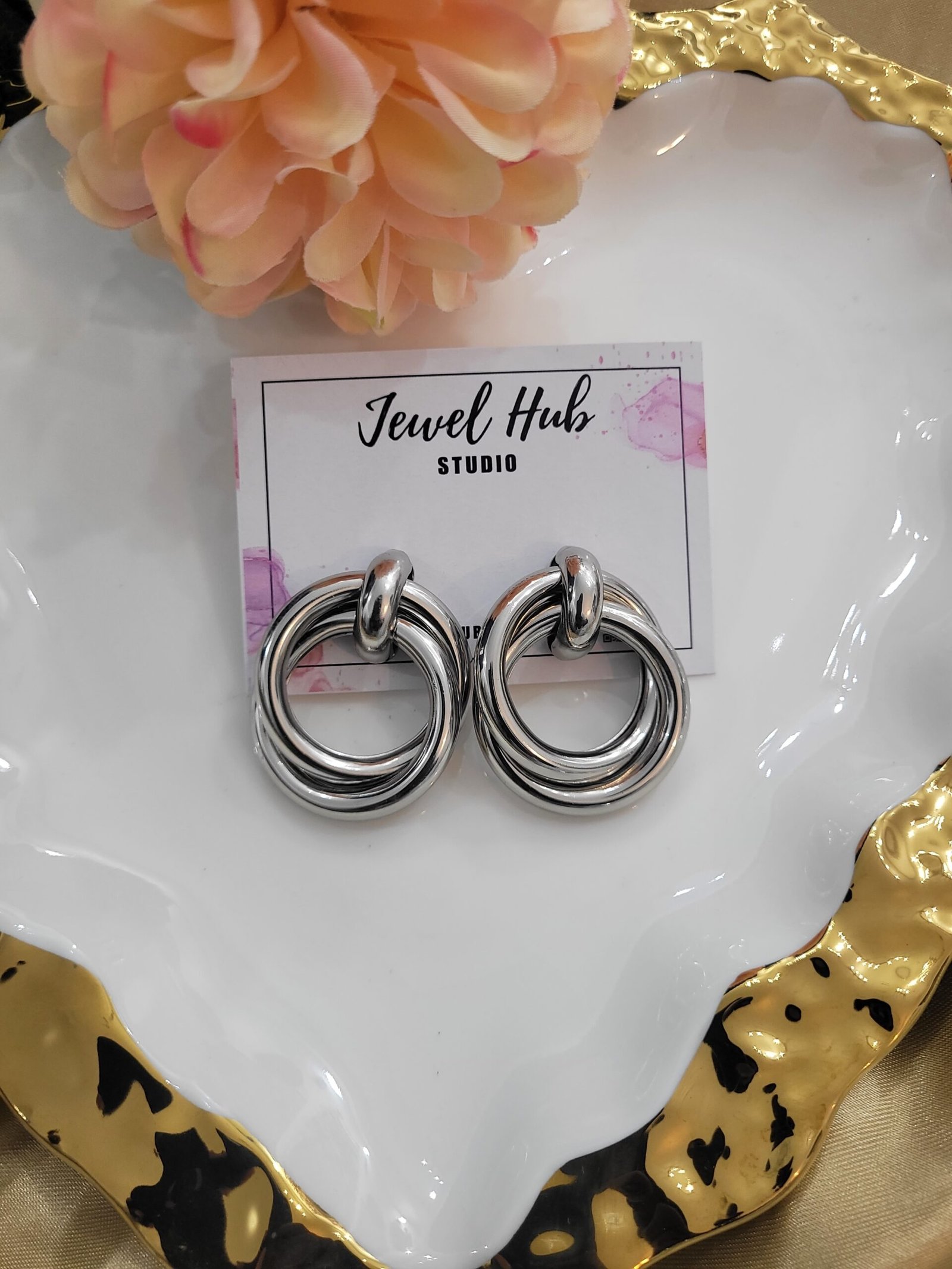 Be the first to review “Silver Circular Looped Studs – Pattern 2” Cancel reply