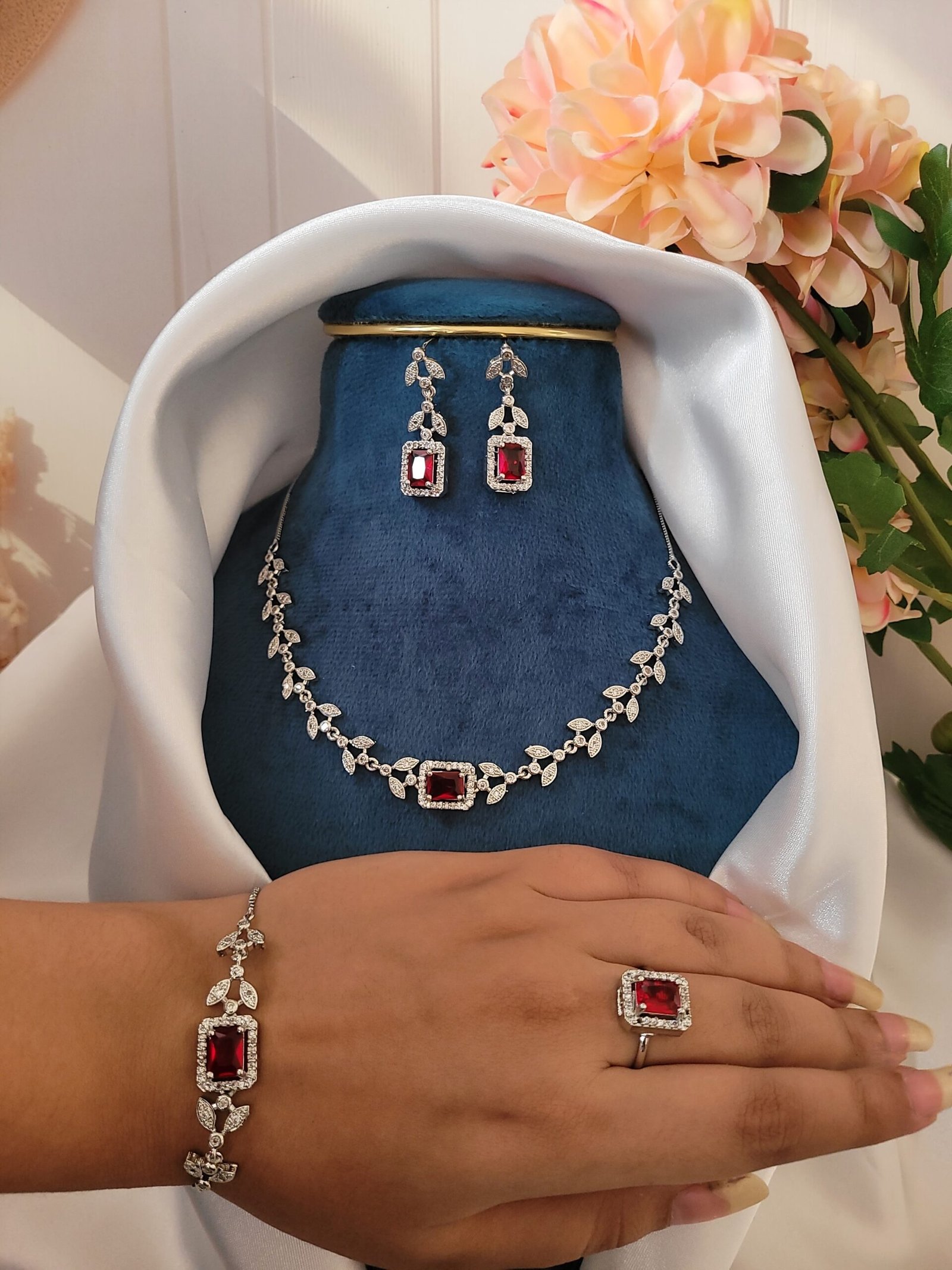 Be the first to review “Sleek American Diamond Combo Set With Bracelet and Ring – Red” Cancel reply