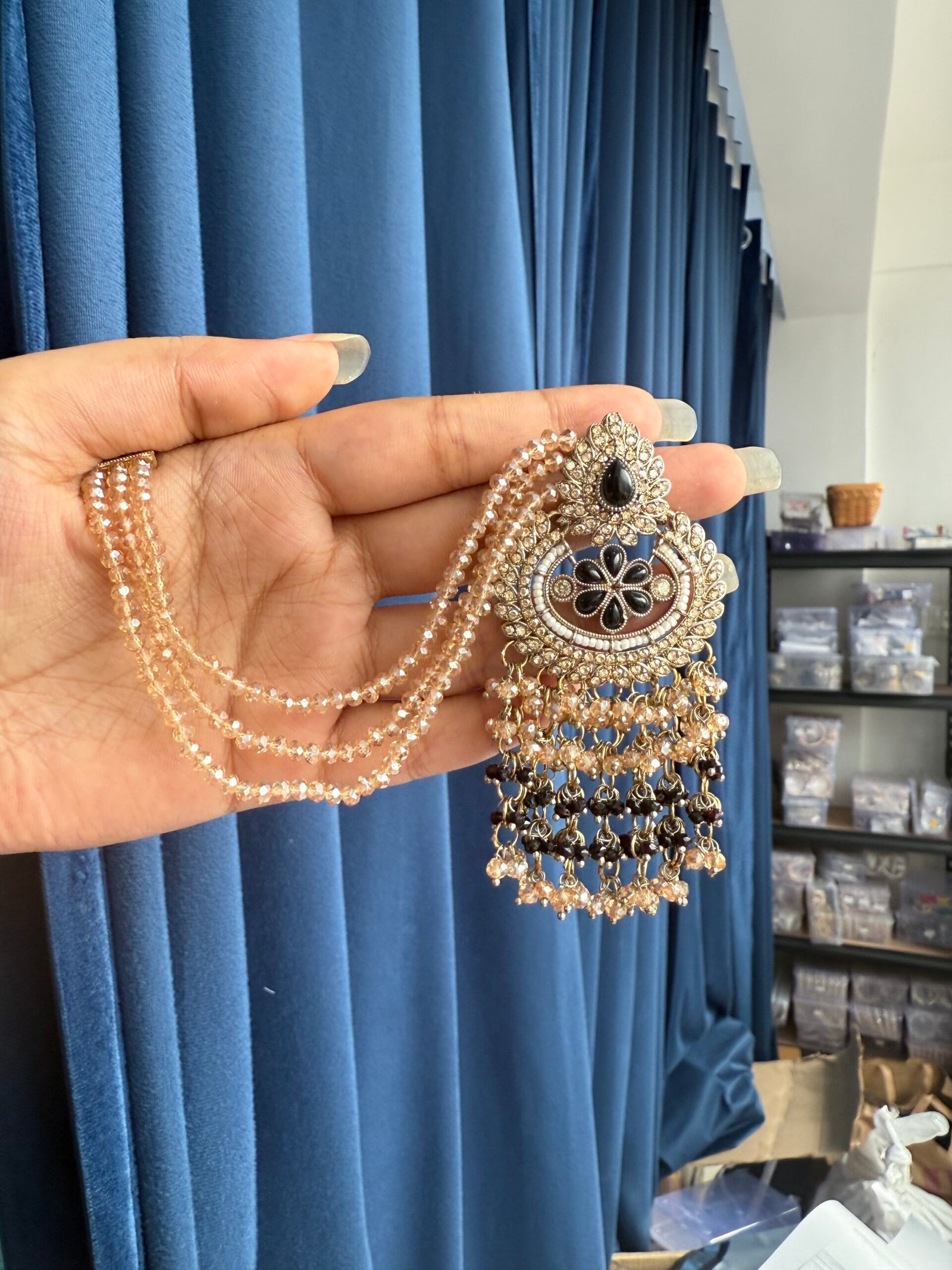 Be the first to review “Supriya Crystal Earrings With Kaan Chain – Black” Cancel reply