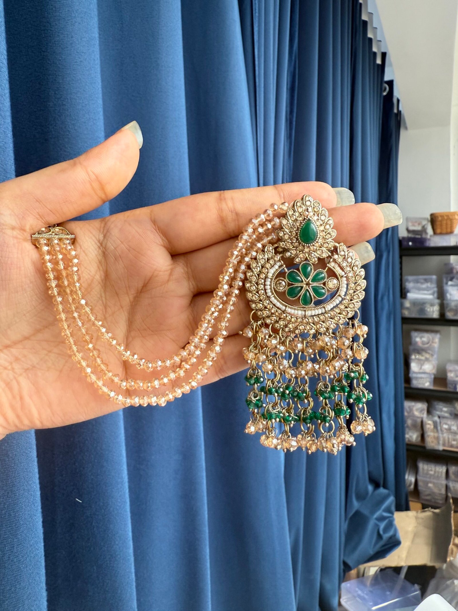 Be the first to review “Supriya Crystal Earrings With Kaan Chain – Dark Green” Cancel reply