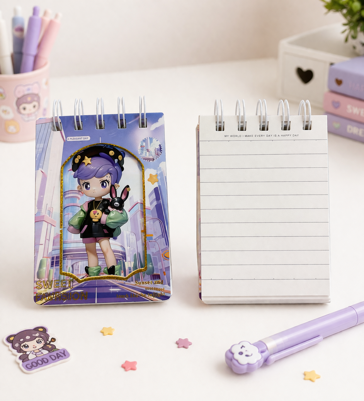 Bring a touch of playful elegance to your everyday notes with the Sweet Charm Mini Spiral Notepad. Featuring a vibrant, cartoon-inspired cover with glossy accents and a compact spiral design, this notepad is perfect for quick jotting, reminders, and creative ideas. The inside pages are neatly lined for easy writing, while the sturdy build ensures durability on the go. Ideal for students, stationery lovers, or anyone who enjoys cute and stylish desk essentials, it’s both functional and delightfully eye-catching.