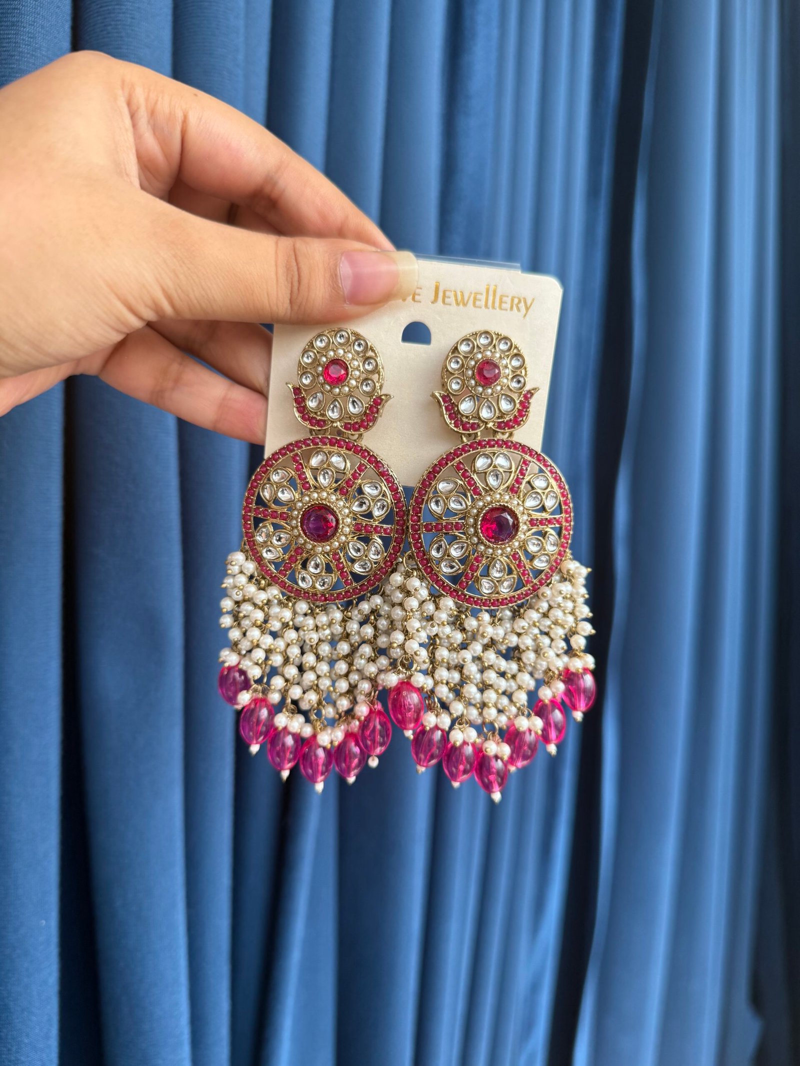 Be the first to review “Tanishqa Premium Ethnic Earrings – Dark Pink” Cancel reply